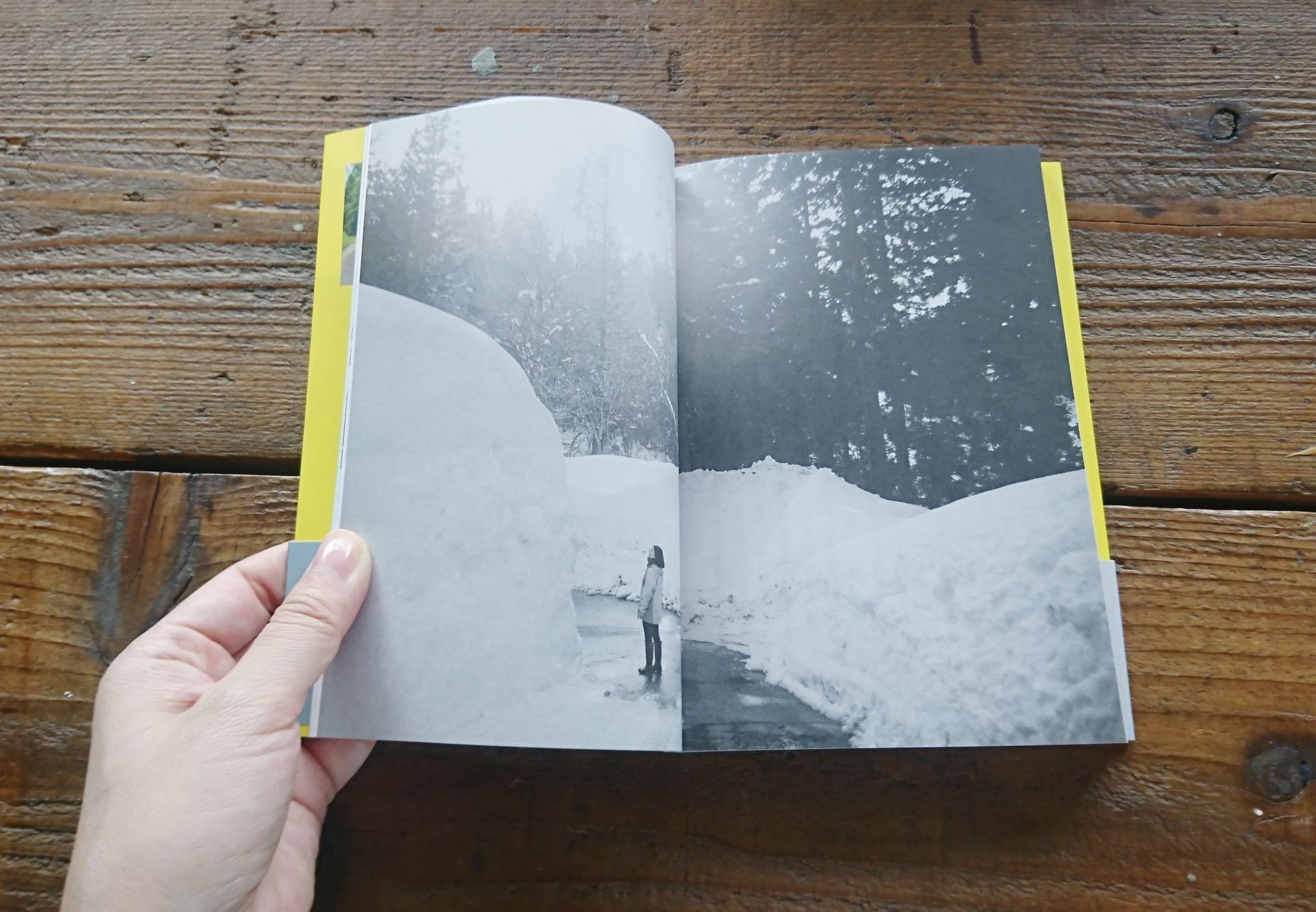 今回担当させていただいたのは、書籍の表紙まわり、帯、各章の扉、本文のフォーマットです。 雪深い十日町の里山で、歩いている可奈子さんと娘のあさちゃんの姿を表紙に描きました。 雪は厳しいだけでなく、人の優しさ、見えない幸せ、ワクワクを届けてくれるもの。 そんな考え方がとても好きで、背景を明るいきぼうの光の色として黄色に決めました。