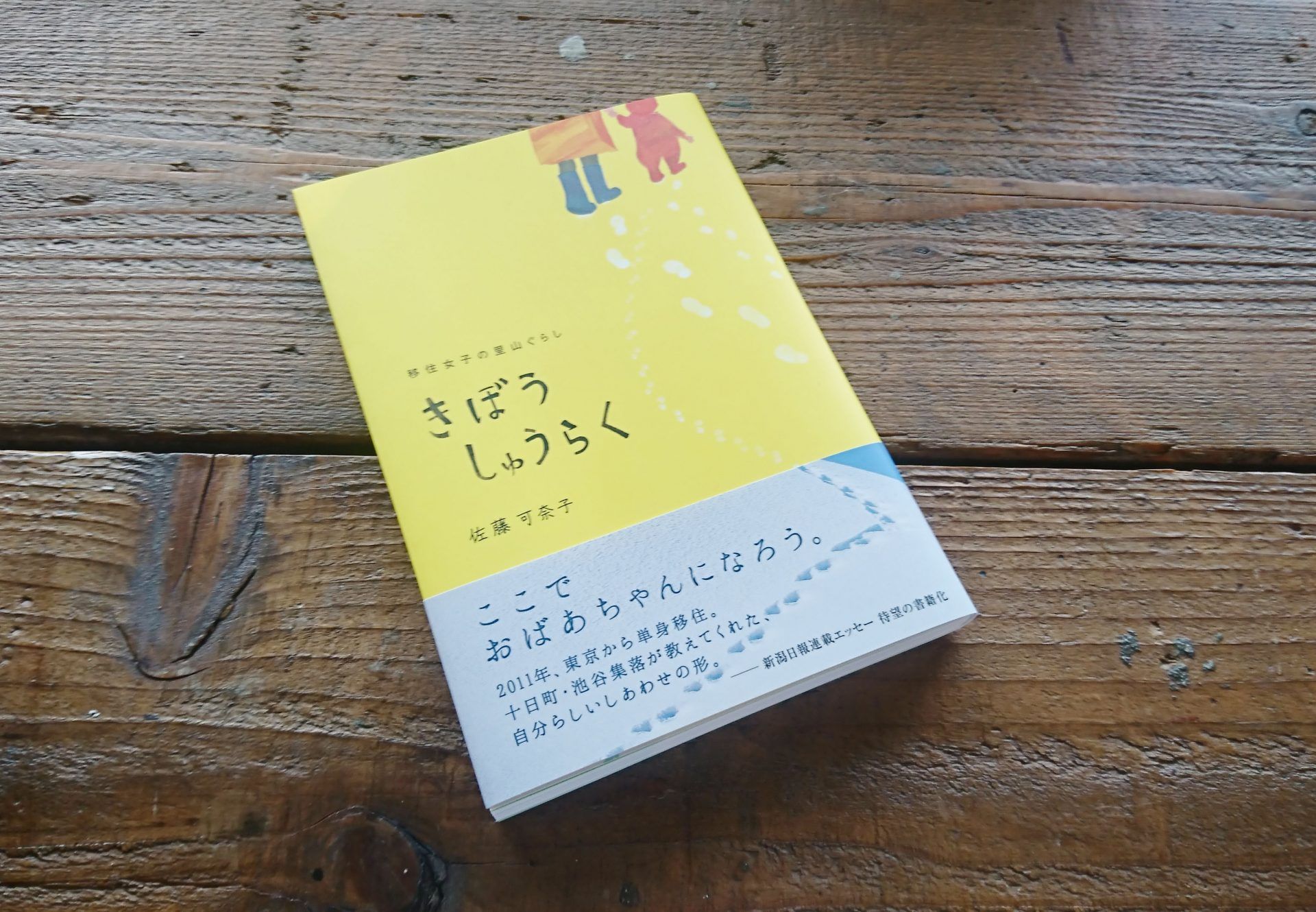 新潟日報で5年連載していた「きぼうしゅうらく」が書籍化する報告でした。 可奈子さんは2011年に十日町の池谷集落に移住、就農。「移住女子」として多くのメディアでよく取り上げられている方で、その活動の中で新潟日報にエッセーを掲載していました。